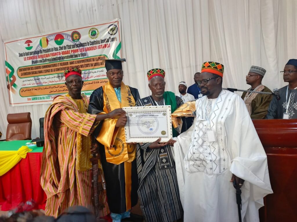 En marge de la conférence, le Conseil a tenu à honorer plusieurs cheikhs, oulémas, chefs coutumiers et religieux, ainsi que des personnalités distinguées, en leur décernant le Doctorat Honoris Causa, en guise de reconnaissance et d’encouragement pour leurs efforts dans la consolidation de la paix et de la cohésion sociale.