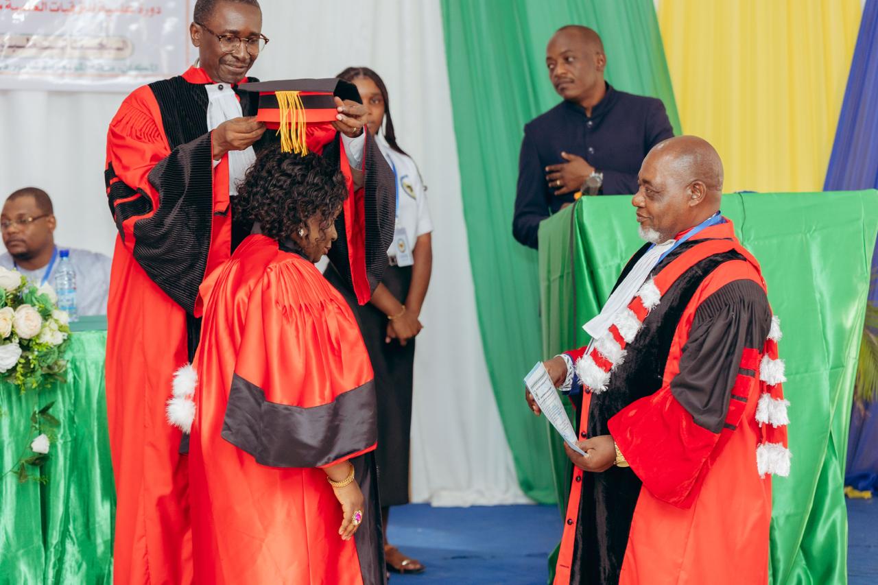 Les récipiendaires ont reçu leurs parchemins académiques des mains de leurs maîtres, en présence des représentations diplomatiques et de Son Excellence Madame la Première Dame du Gabon.